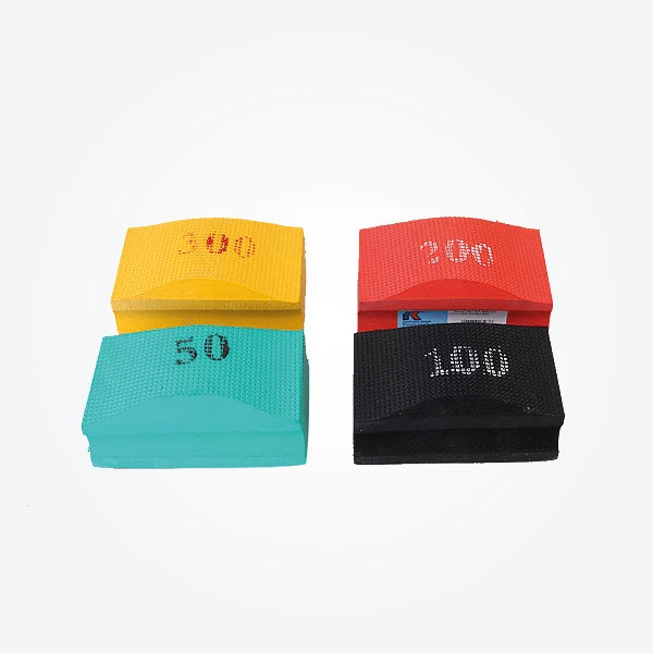 Raimondi diamond hand polishing pads 90 x 55mm with grit 50,100,200 or 300 for use on tile and stone edges. Green, 50 grit is the roughest while the Yellow, 300 grit is for the smoothest finish. Use on tile/stone edges.